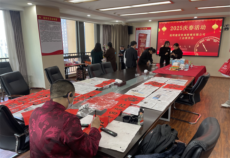春节,家家户户都有张贴春联的习俗,红红火火的春联给节日增添了喜庆的气氛。为了喜迎蛇年的来临,营造节日的喜庆气氛,昆监(集团)党委联合公司工会于2025年1月22日下午,在公司党员活动室组织了一场“2025庆春活动”,公司各部、室职工代表共计40人参加了此次活动。
